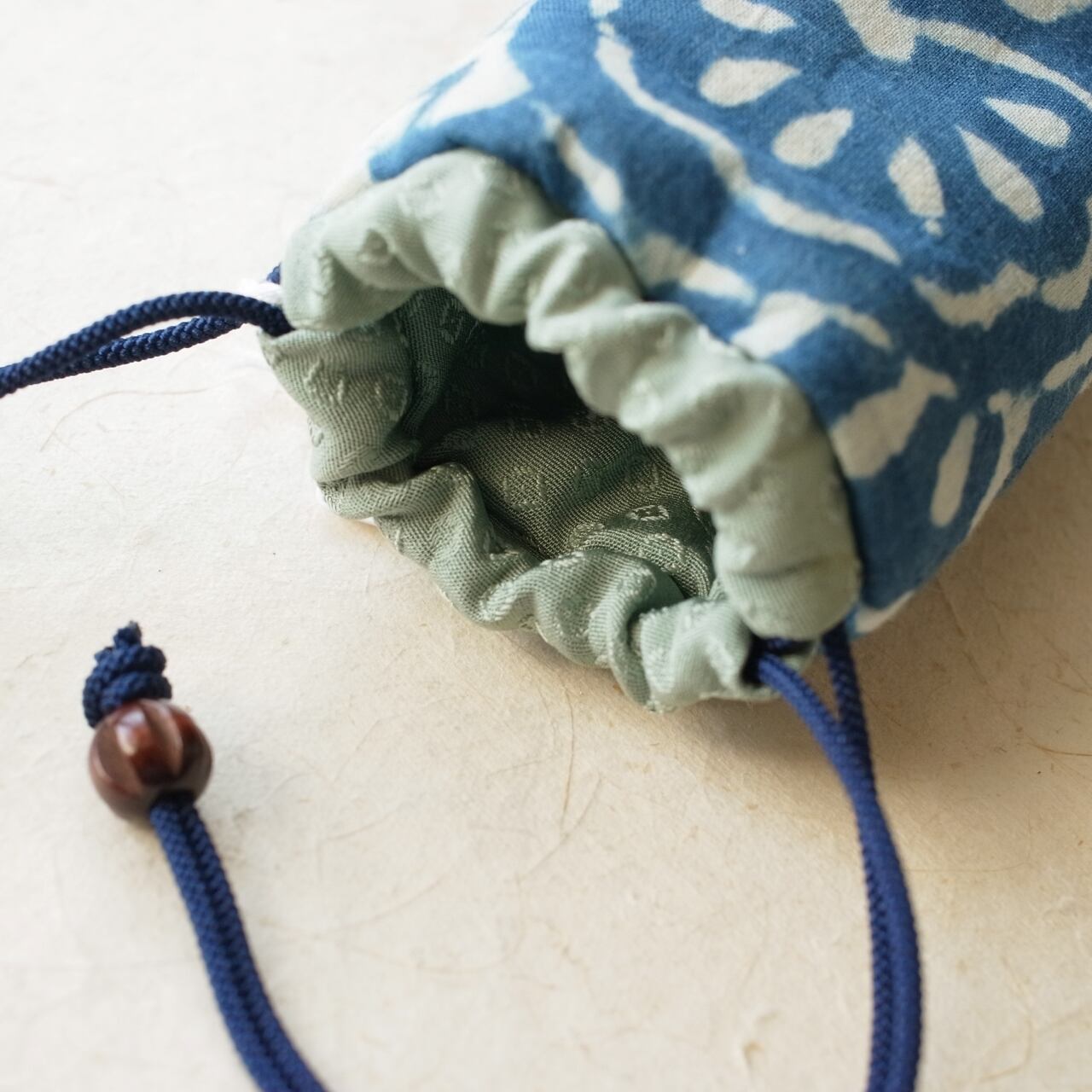 作品のイメージに合わせて1点ずつ手づくりしている専用の袋もセットで届け。