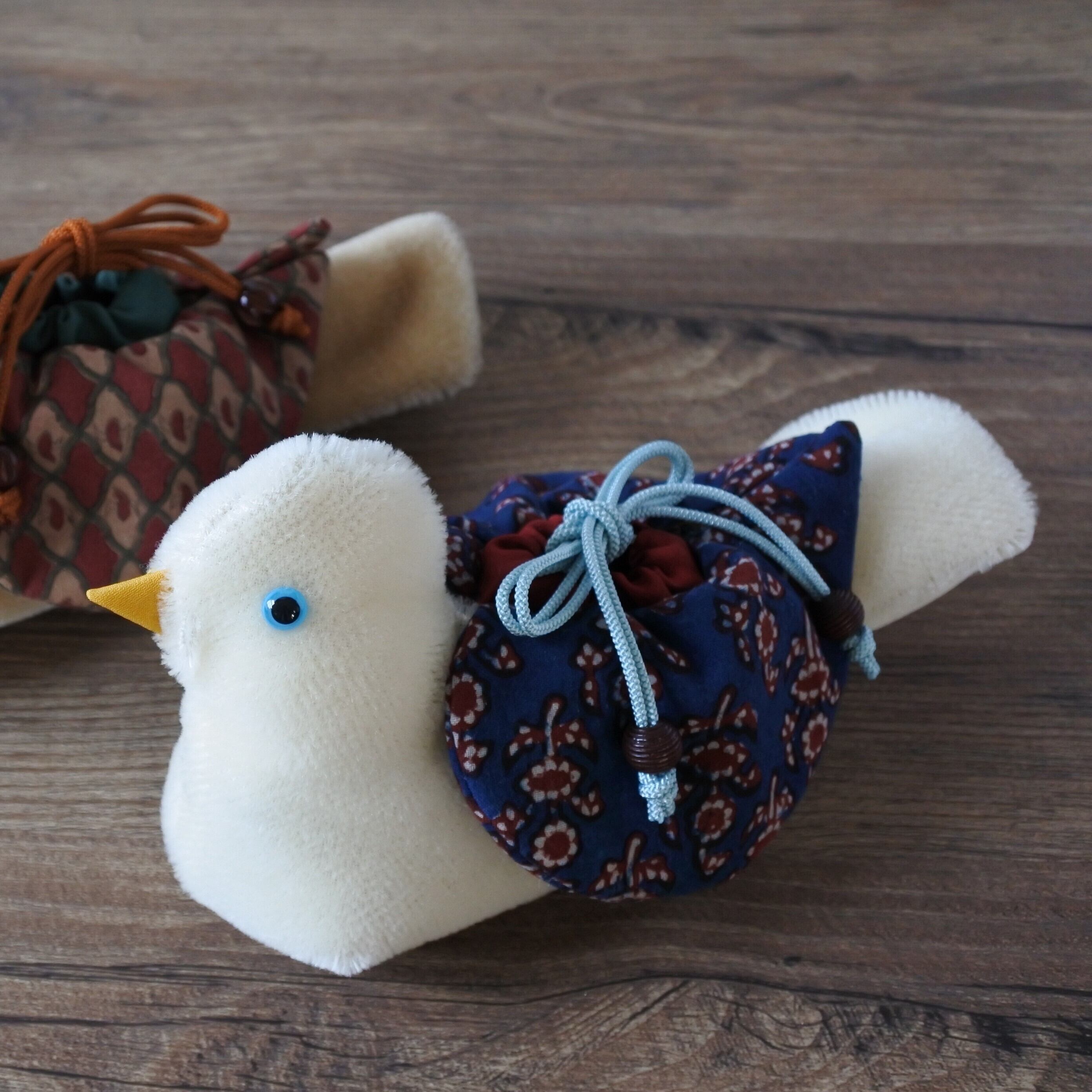 セットの巾着は、スペシャルな鳩袋!