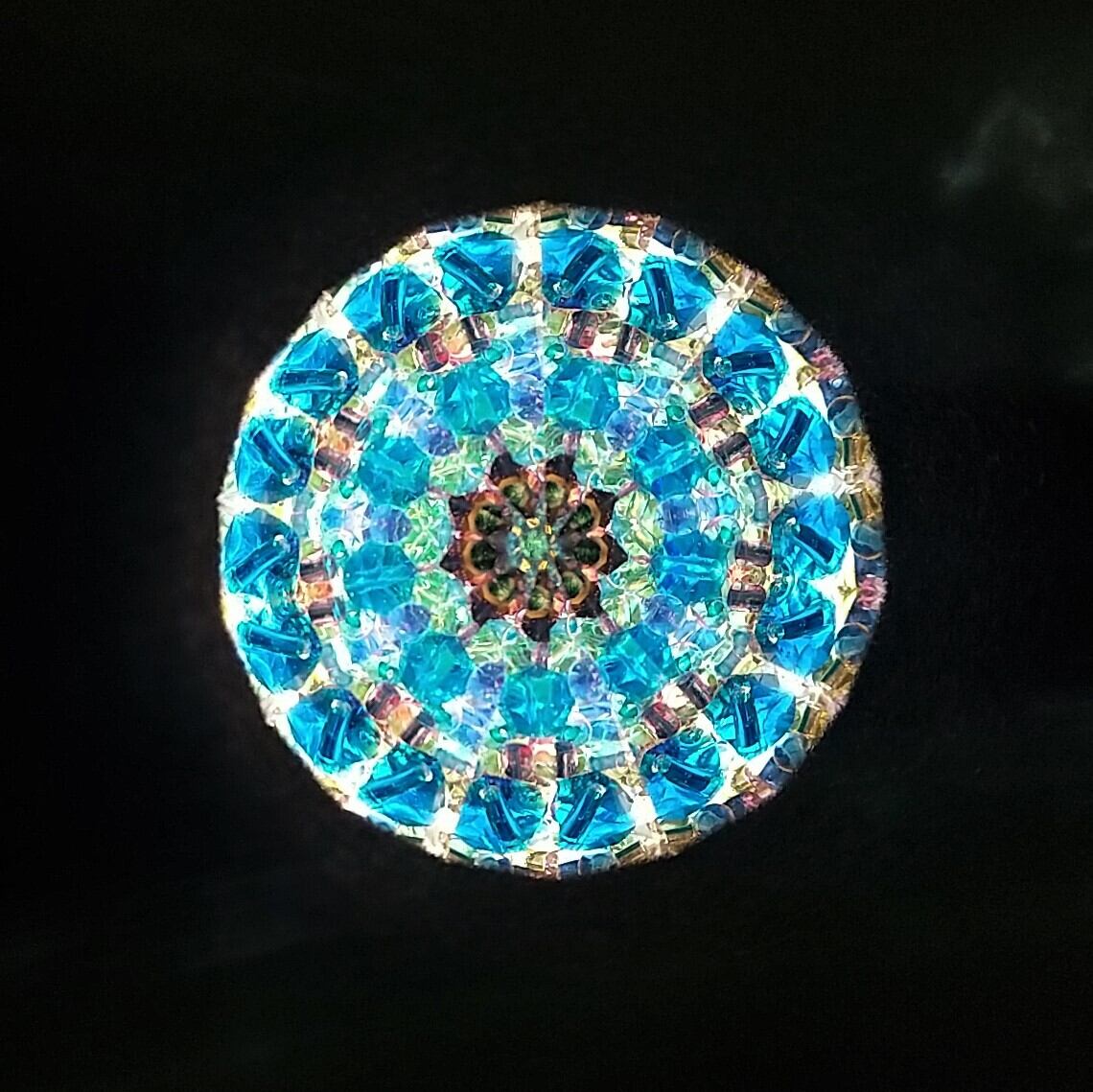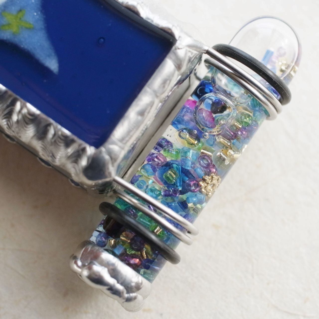 中を覗くとブルー系の中にグリーンやパープルなど様々な色が広がって、まさに魔法のようにキラキラした美しさ!