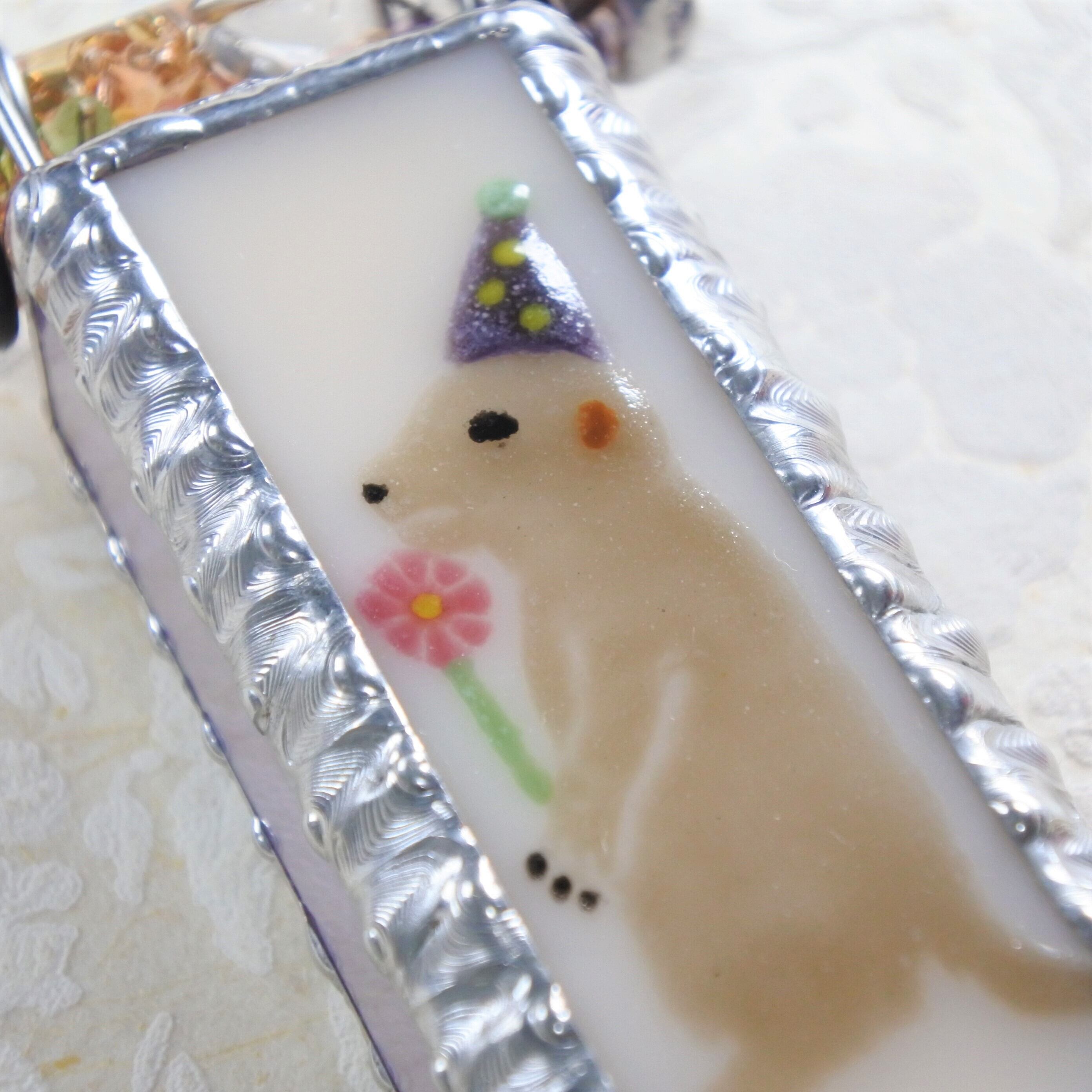 紫色のパーティハットにピンクのお花を持ったプレイリードッグ。
