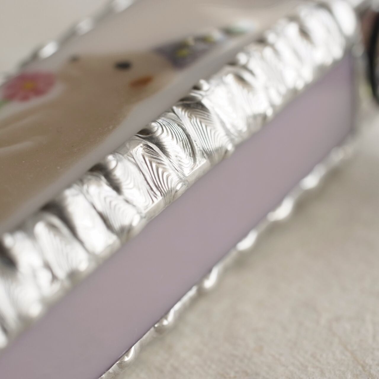 本体の側面、裏面のガラスはライラックピンク色を使用。