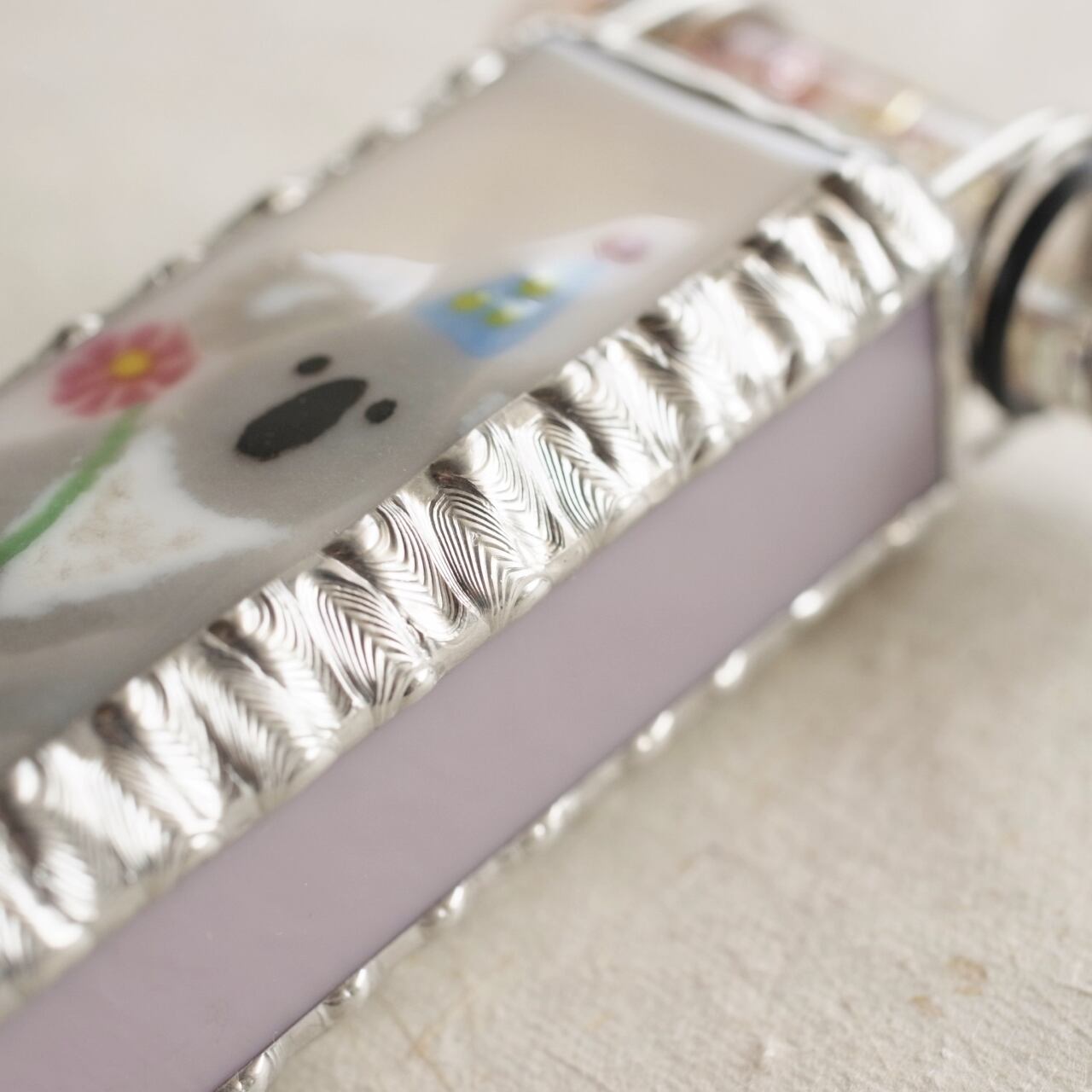 本体の側面、裏面のガラスはライラックピンク色を使用。
