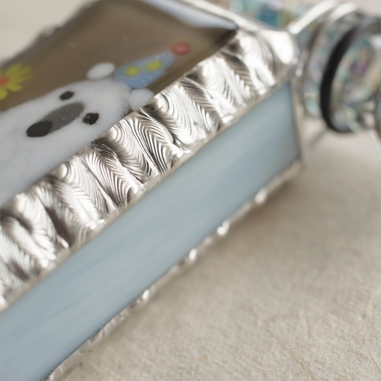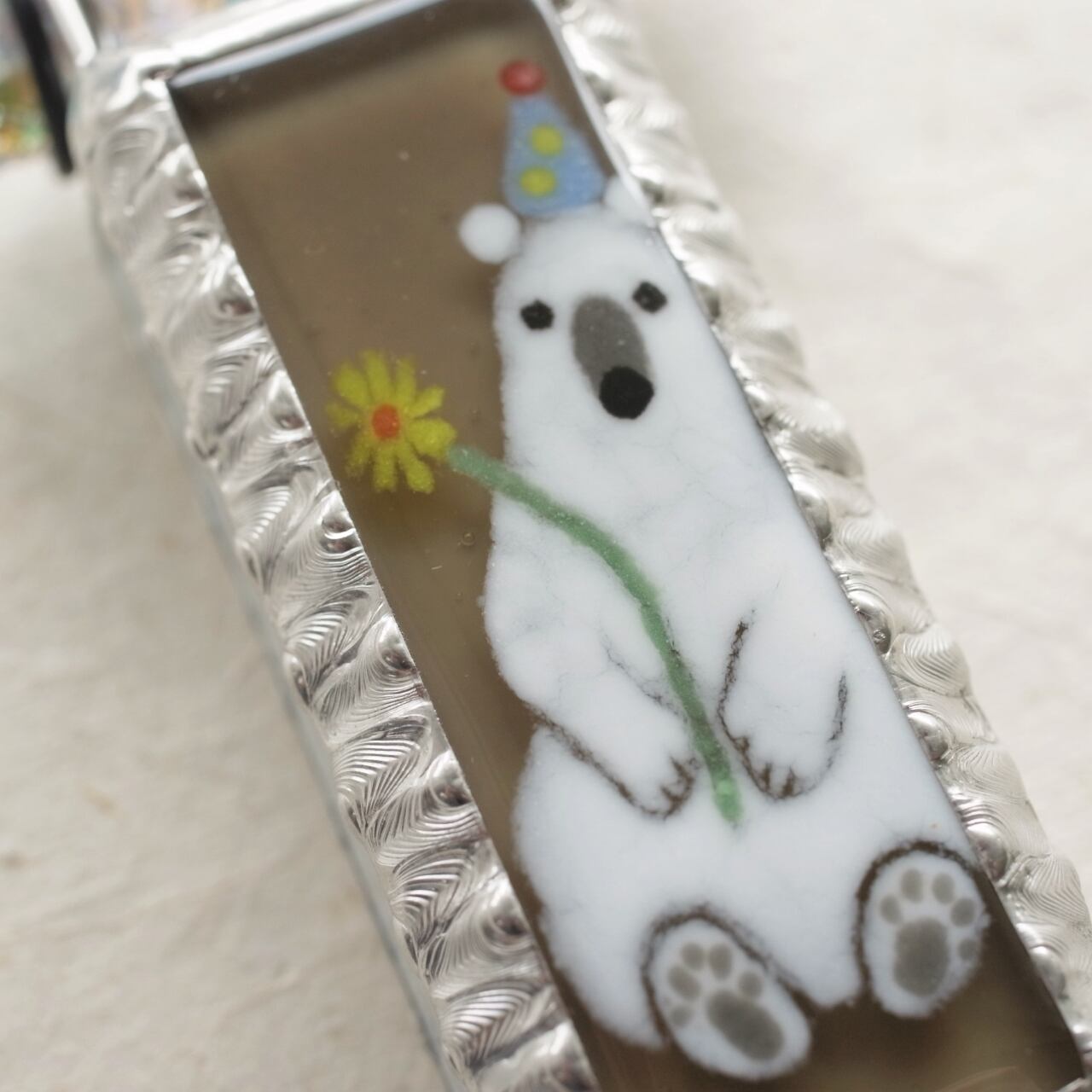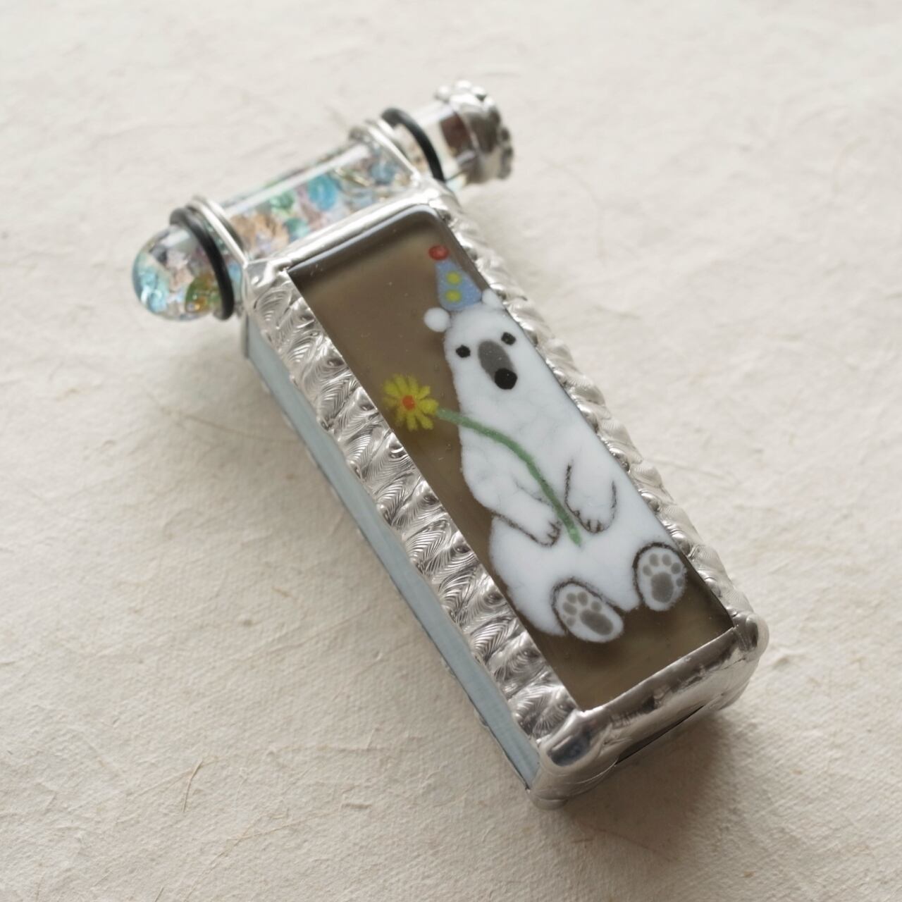 普段作っている「シロクマ」は、ガラスの色を水色やアクア色などブルー系にして、涼やかなイメージですが、今回はモノトーン系のグレーとベージュの2タイプで新登場。