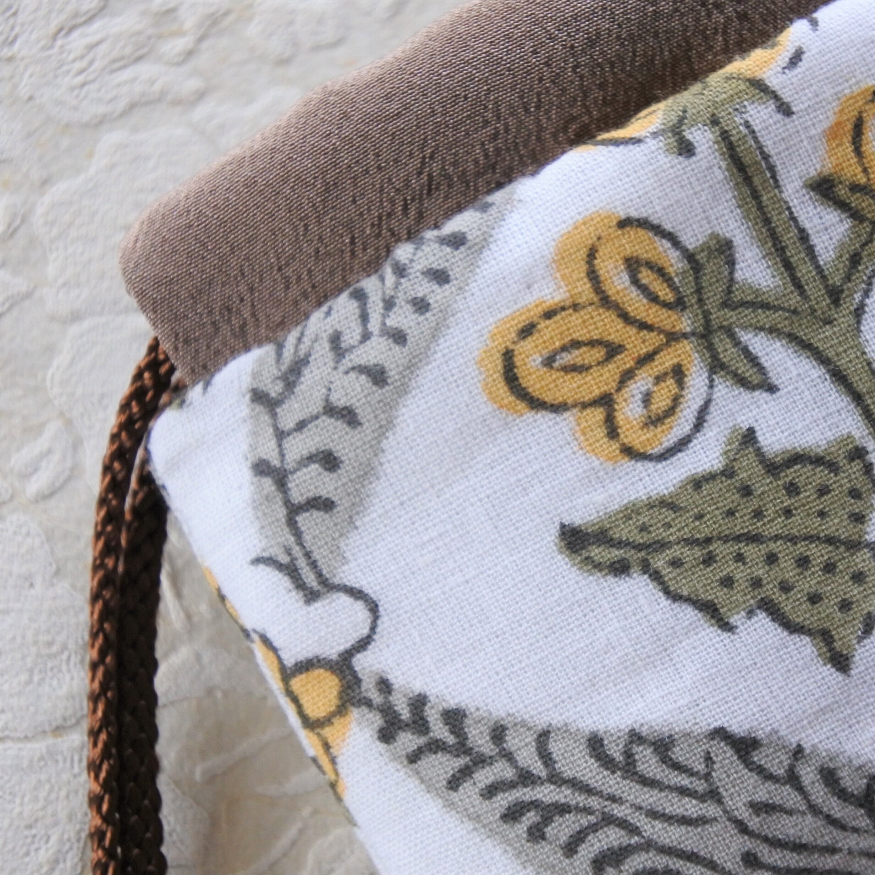 作品のイメージにに合わせて1点1点手作りしている専用の袋もセットでお届け。