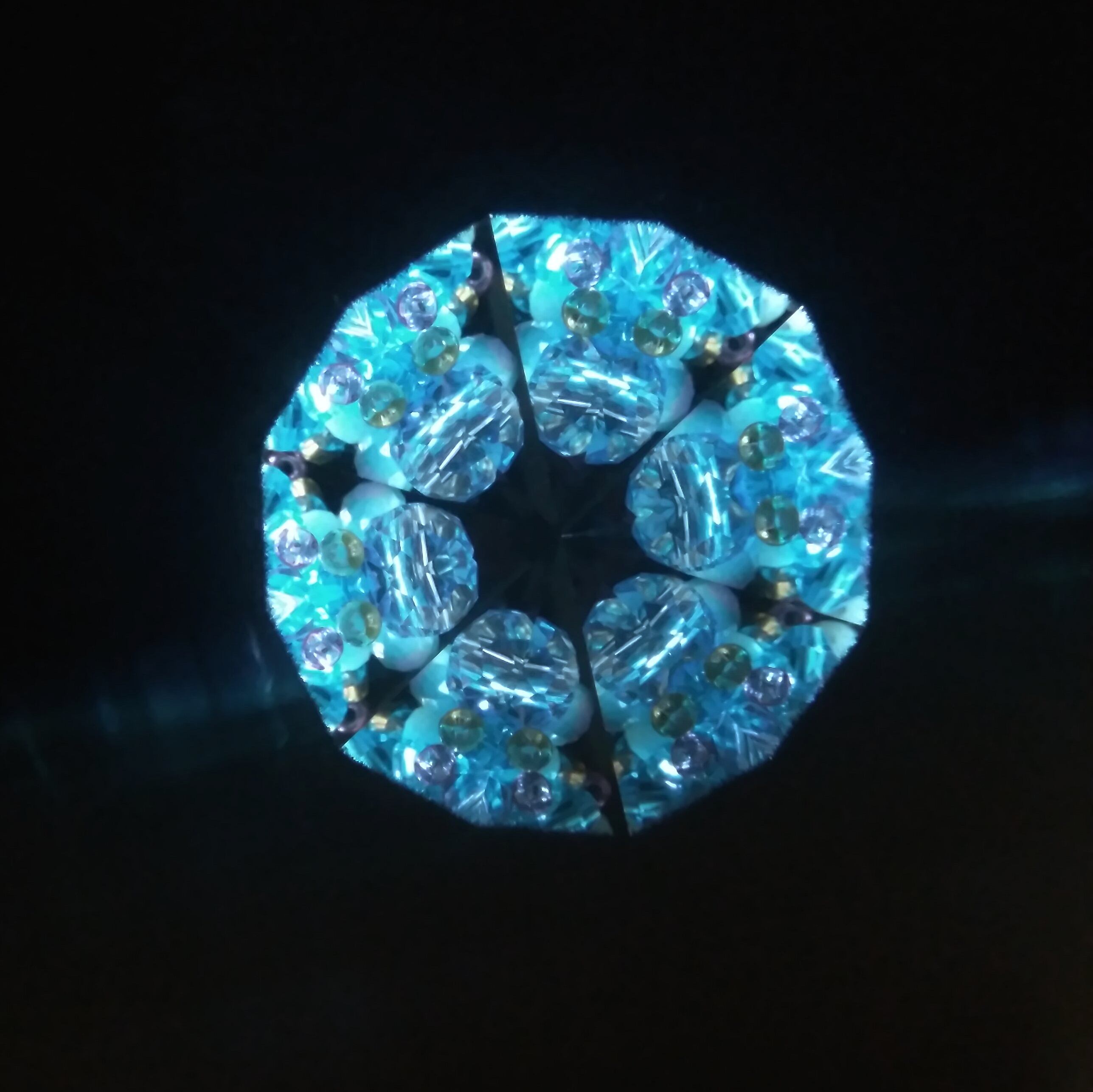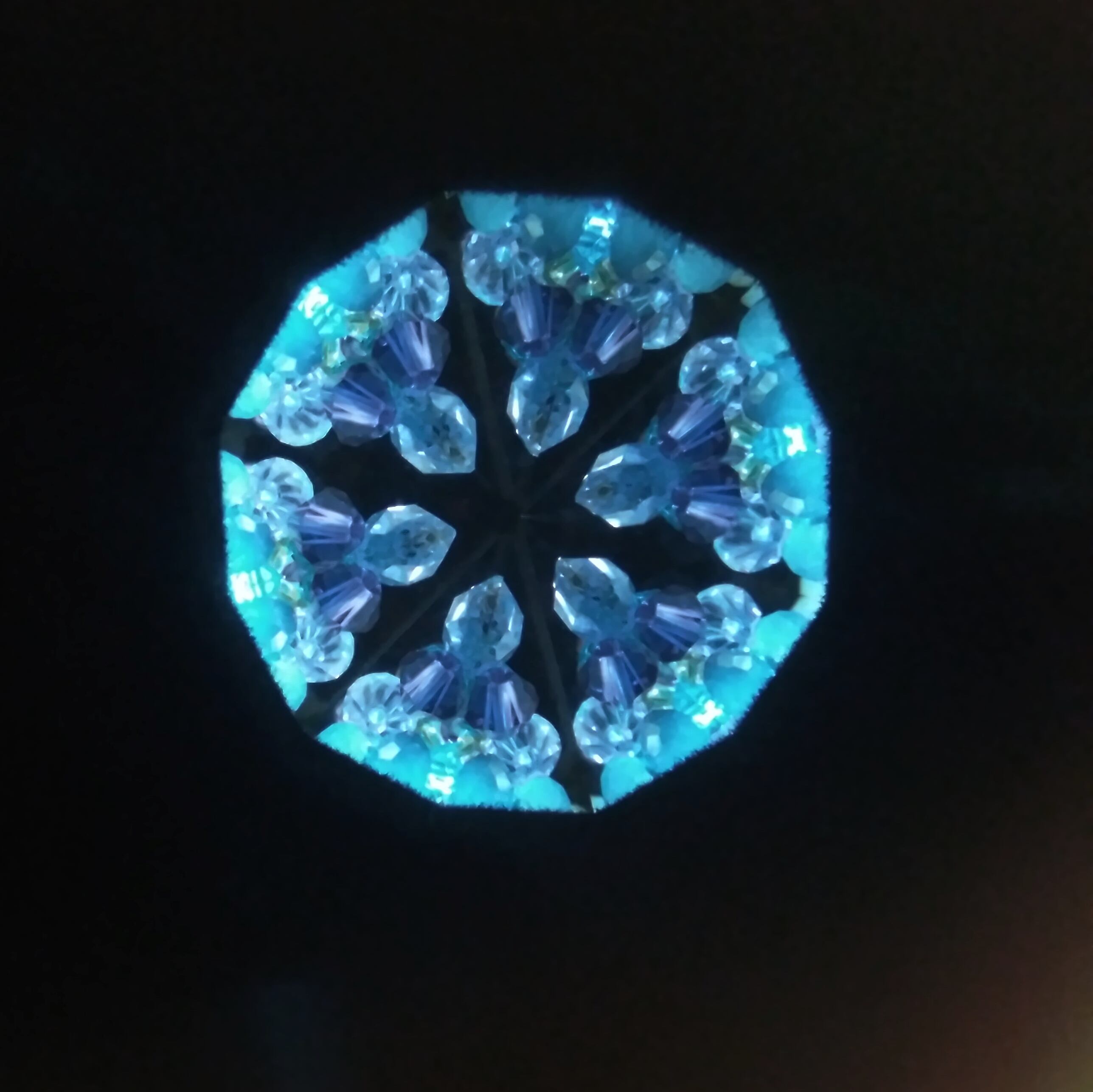 宝石のようにキラキラとしていてとても美しい万華鏡です。ドライチェンバーならではの、回転させるとカシャカシャと鳴る音もお楽しみください。
