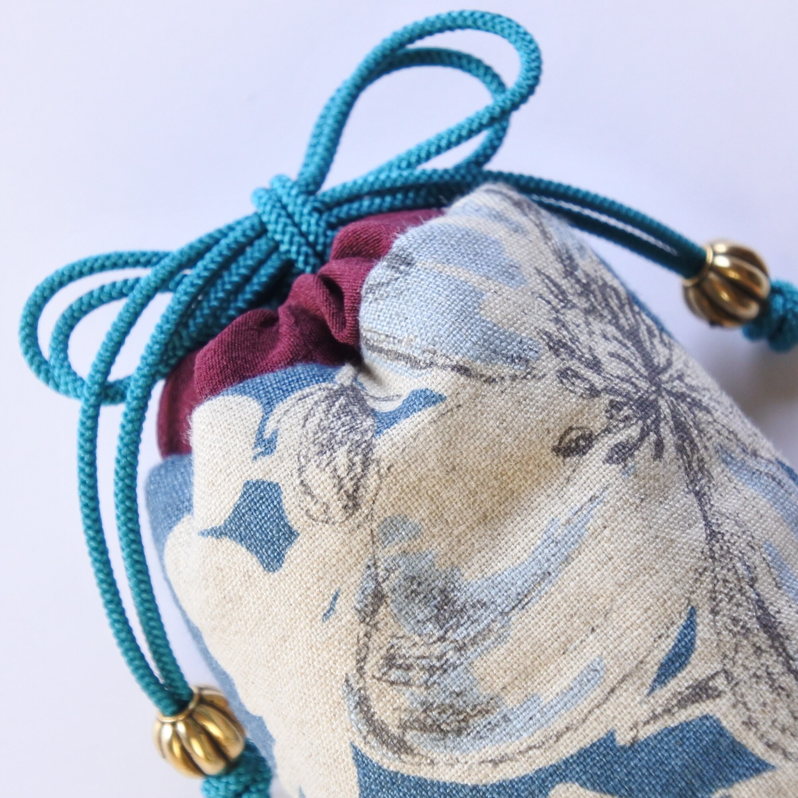 作品のイメージに合わせて1点ずつ手づくりしている専用の袋もセットで届け。