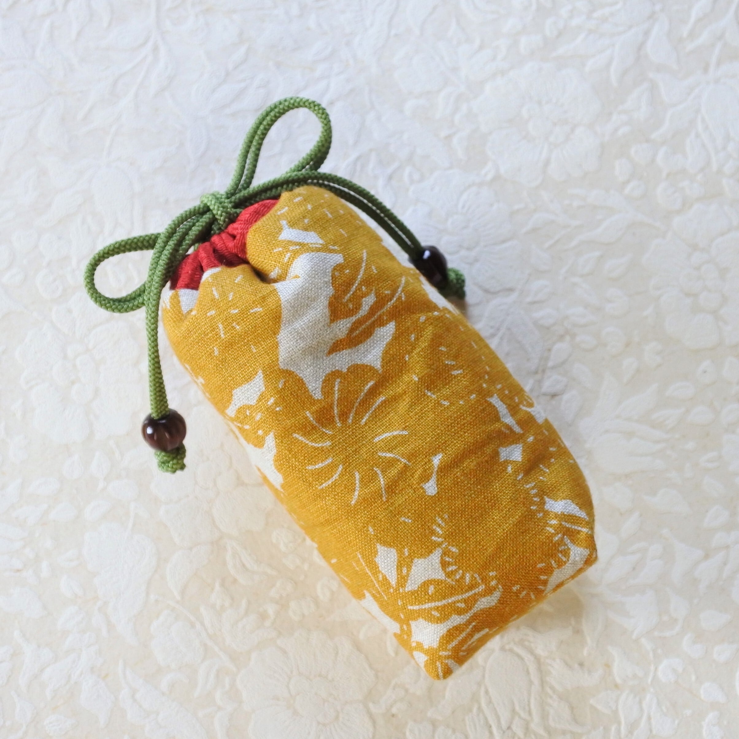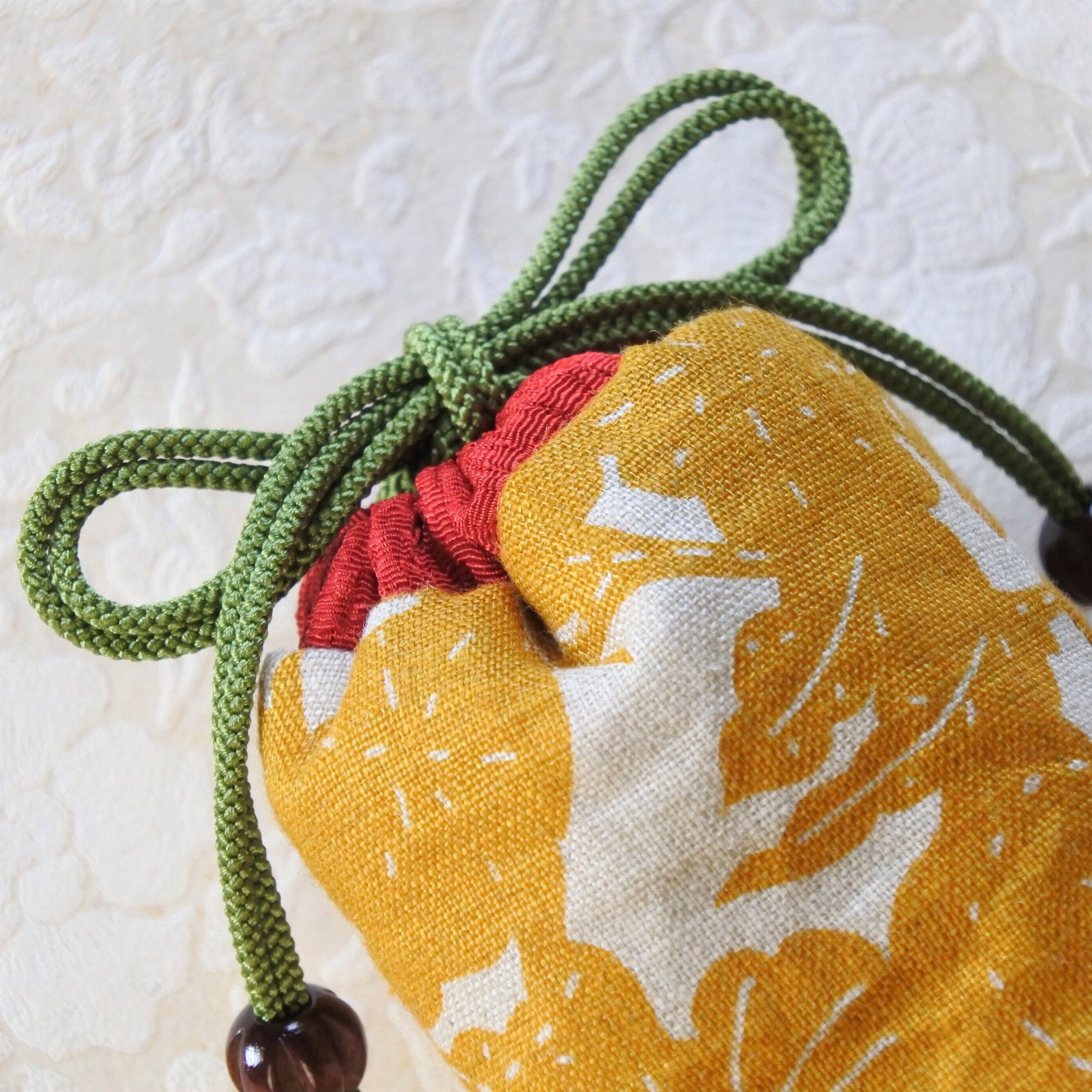作品のイメージに合わせて1点ずつ手づくりしている専用の袋もセットで届け。