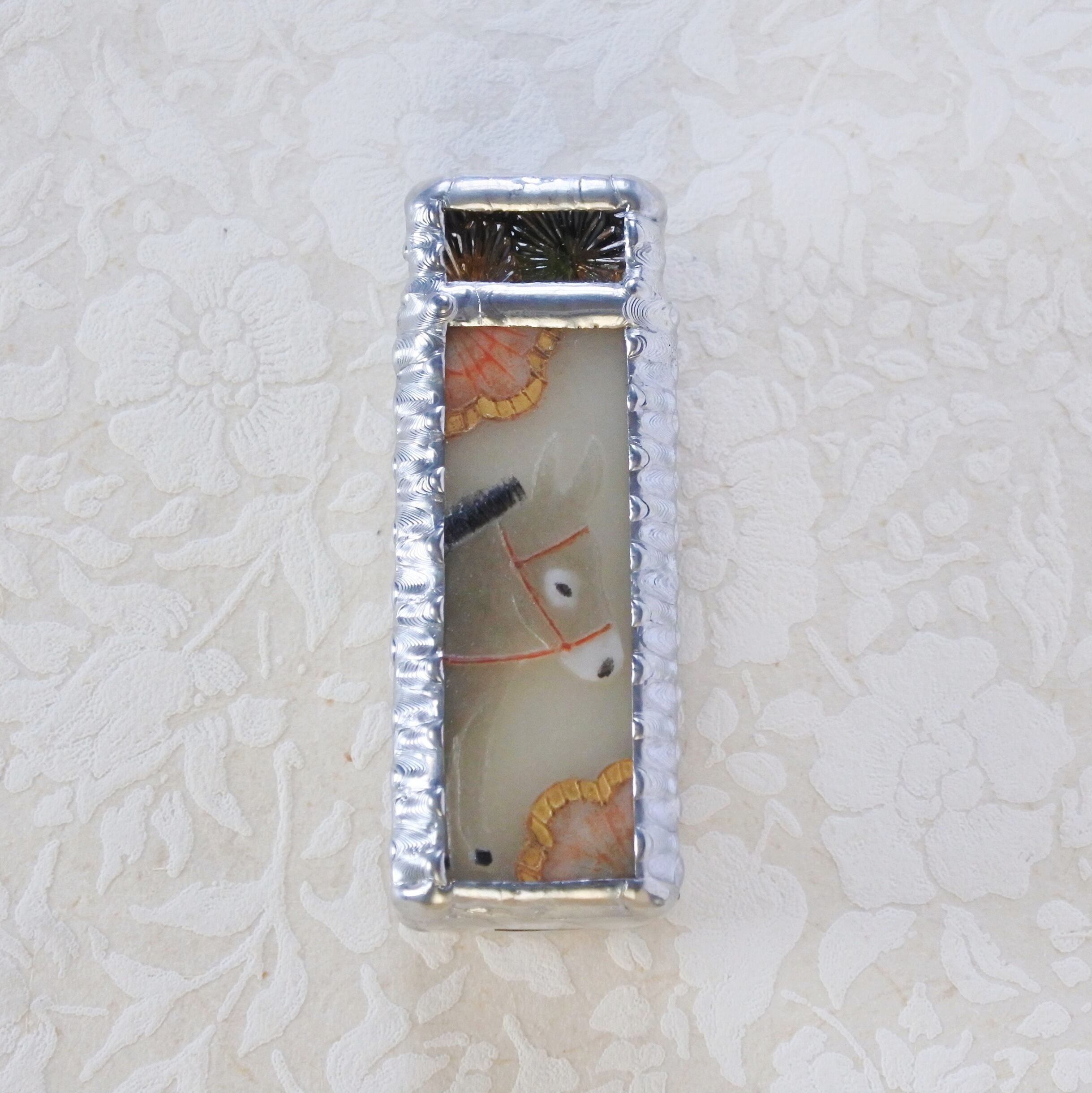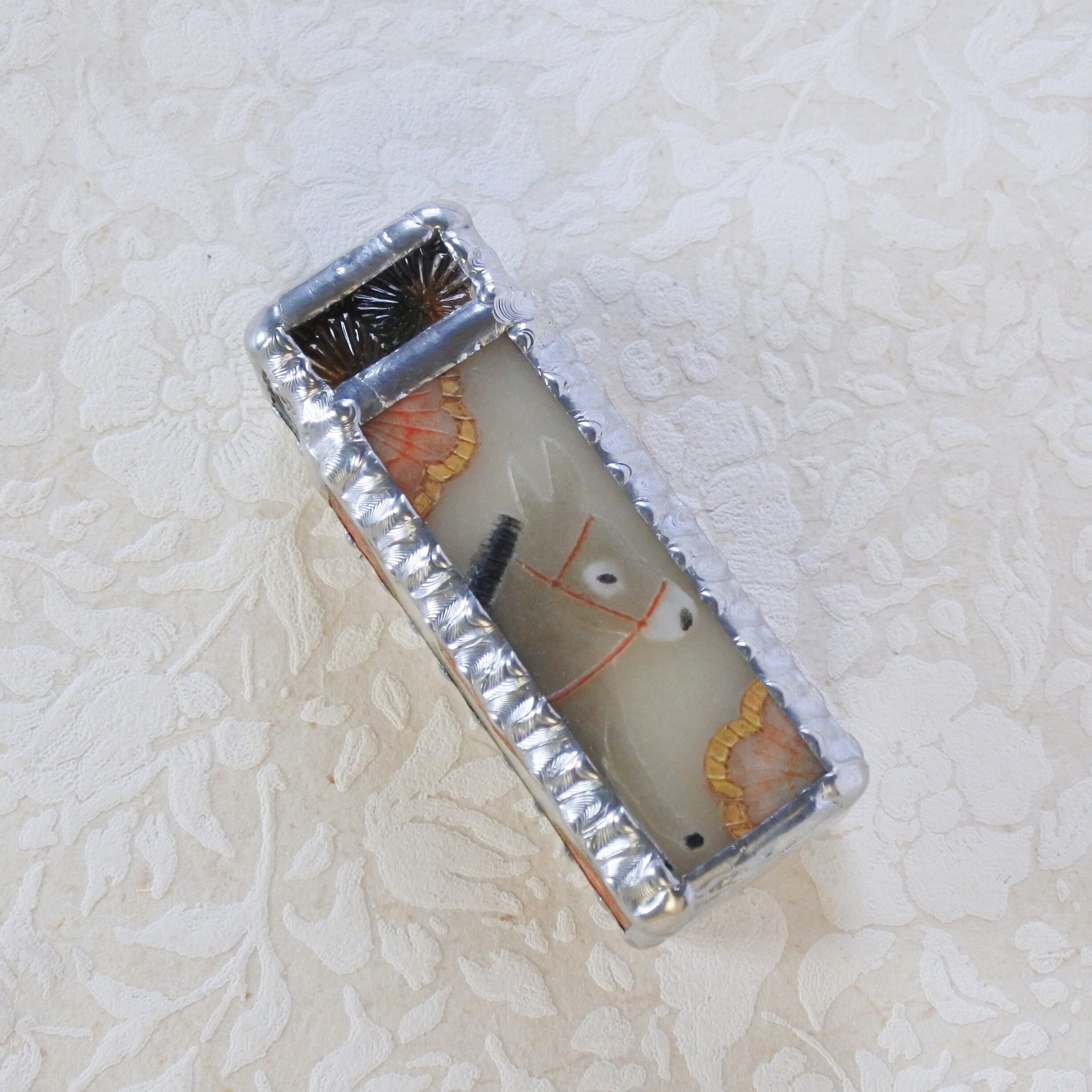 表の面にはベージュ色のロバと金彩を使用したお花模様、他の面にはお花模様と葉っぱが全面に入っています。クリーム色の背景カラーが優しい表情のロバの雰囲気にマッチしています。