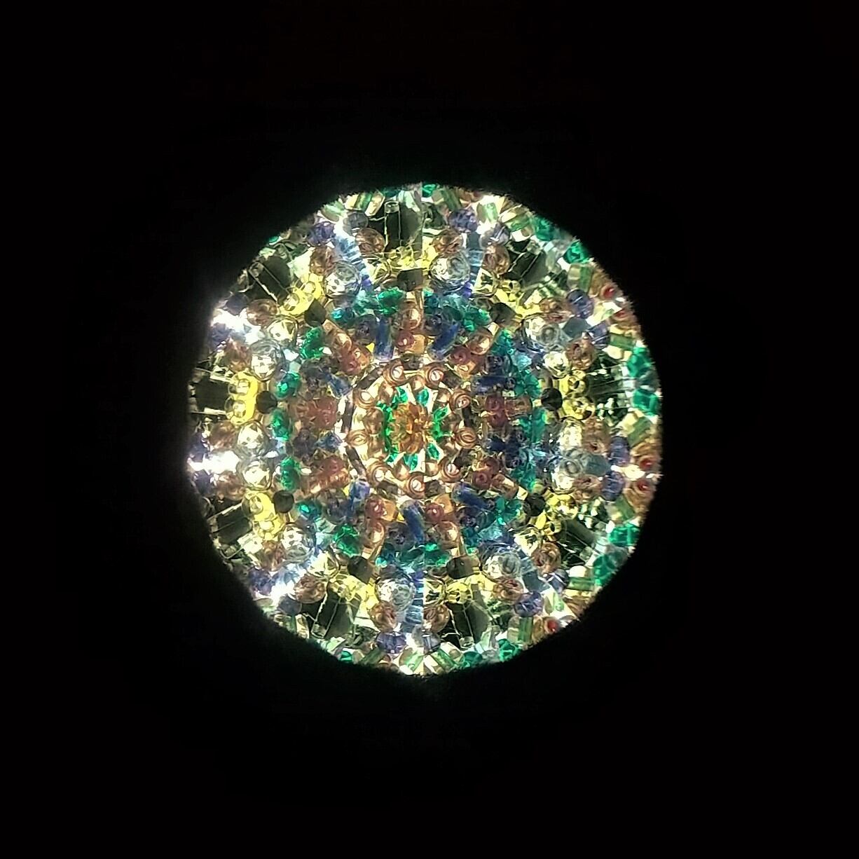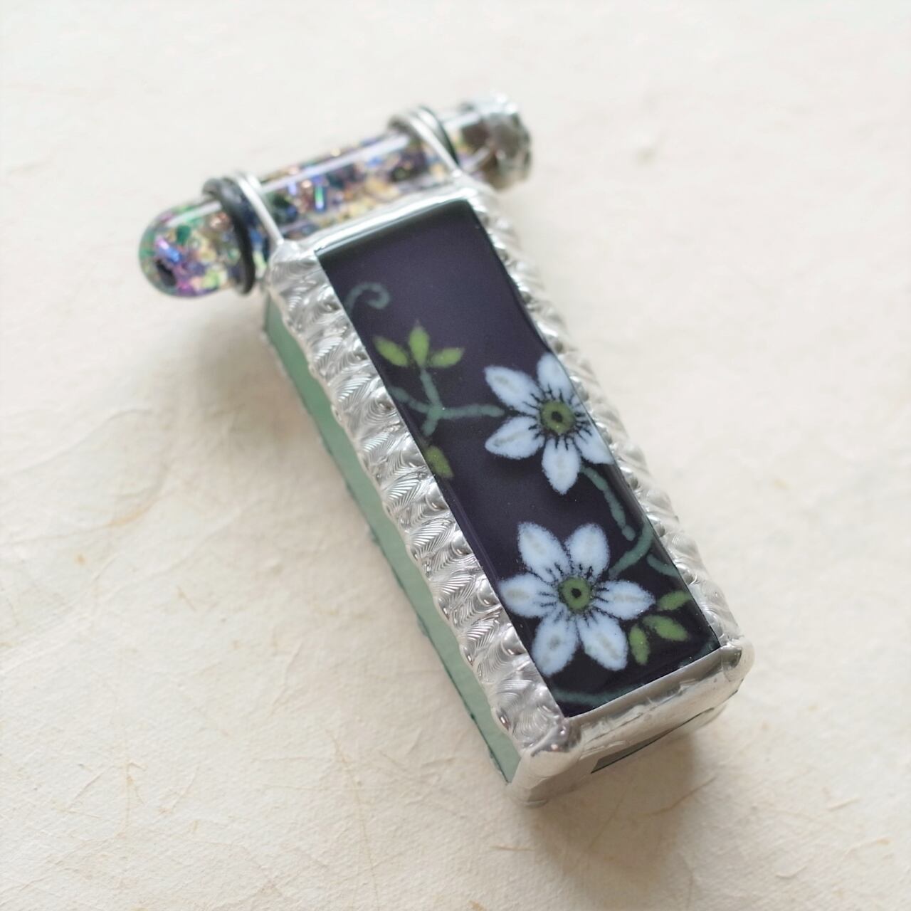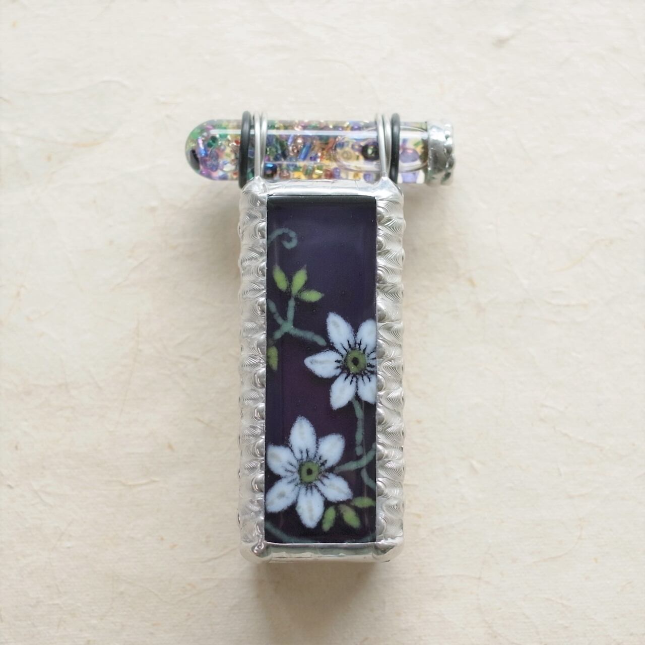 ガラス胎七宝の一番小型のオイルタイプ万華鏡「鉄線(紫)」です。