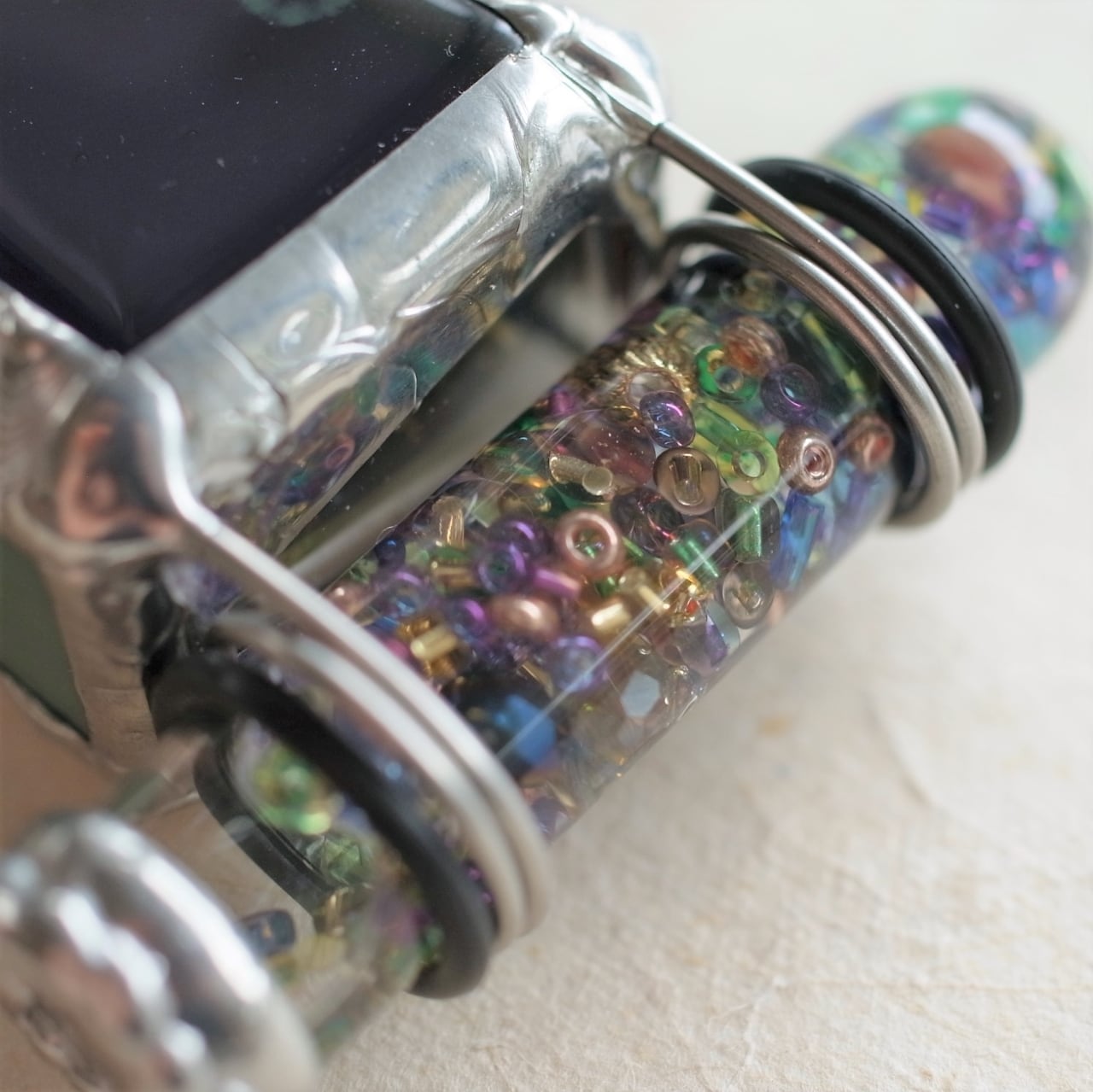 脇ガラスは、やや青み寄りのグリーン。オイルワンドは、グリーン、ブルー、パープル、ネイビー、ラベンダーパープルなど透明感あるシックなブルー系の映像がお楽しみ頂けます。