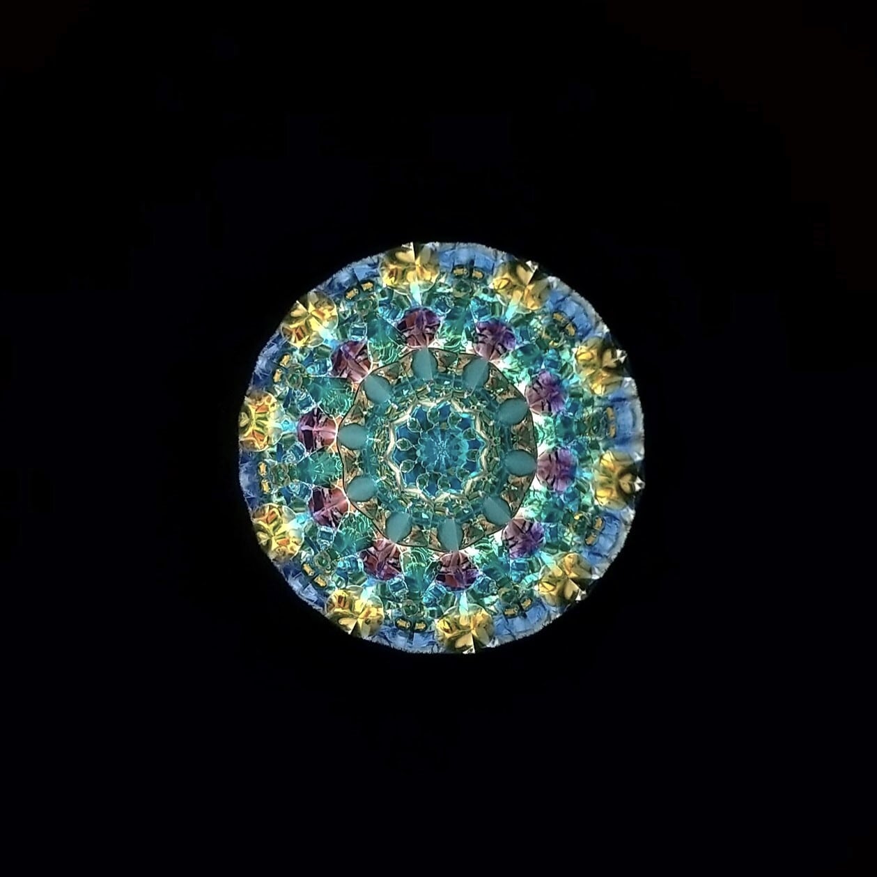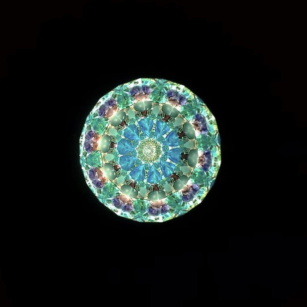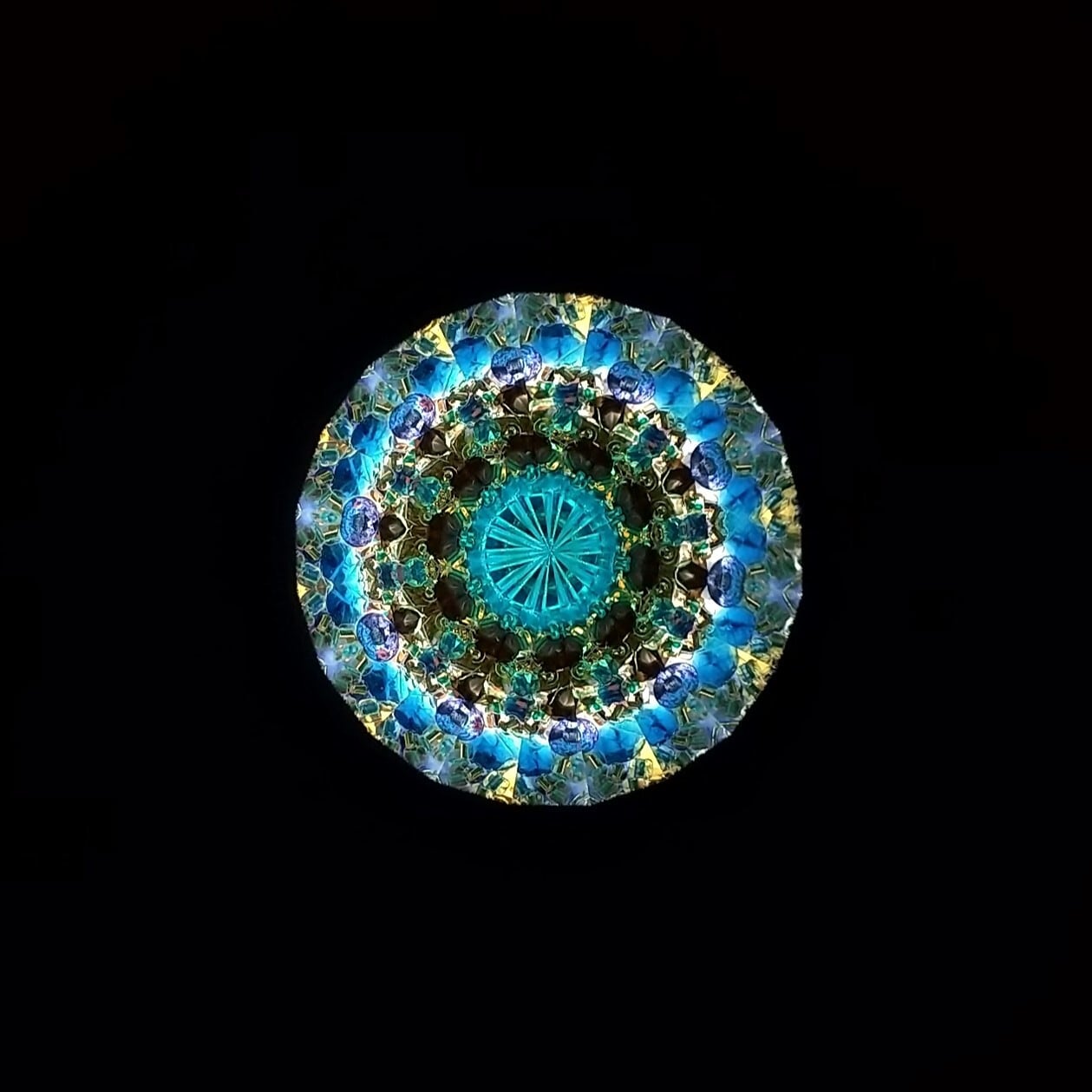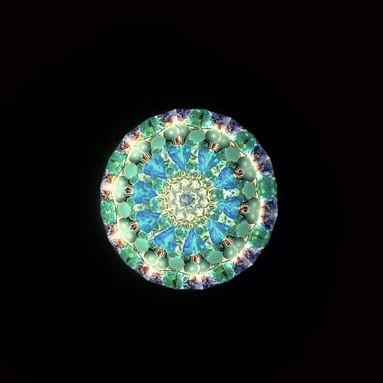 グリセリンオイルとビーズの入った先端のスティックをくるくる回転させると、映像が変化します。マリンブルー、アクアグリーン、紫やゴールドのビーズが入っていて、モスクのモザイクタイルのような、繊細でゴージャスな映像をお楽しみ頂けます。