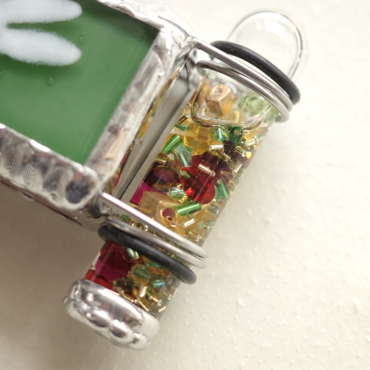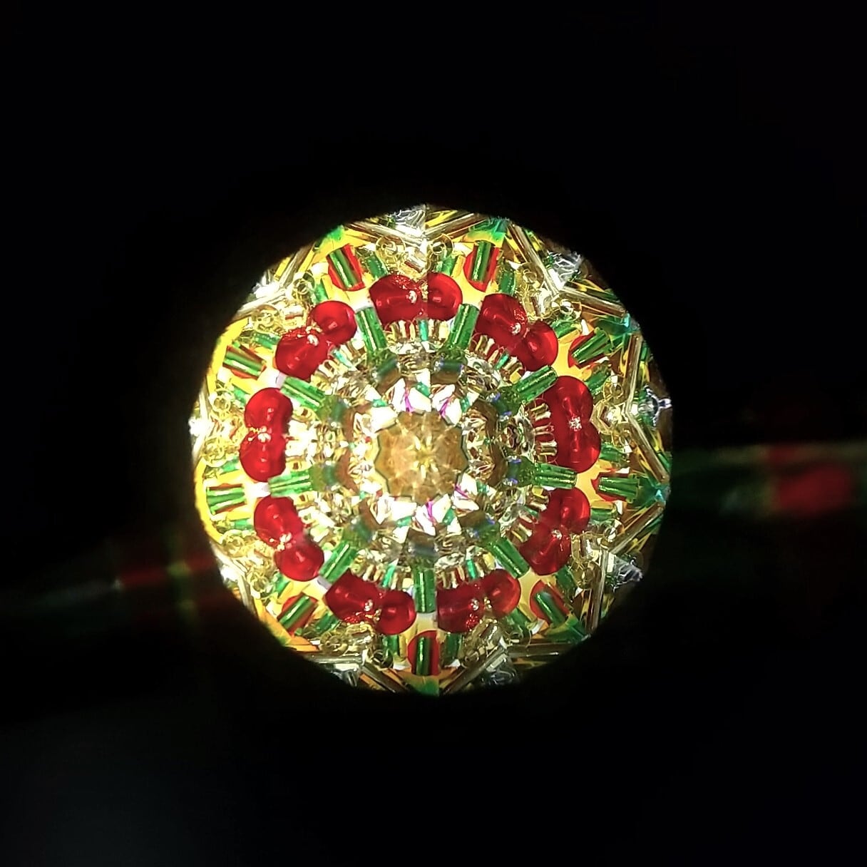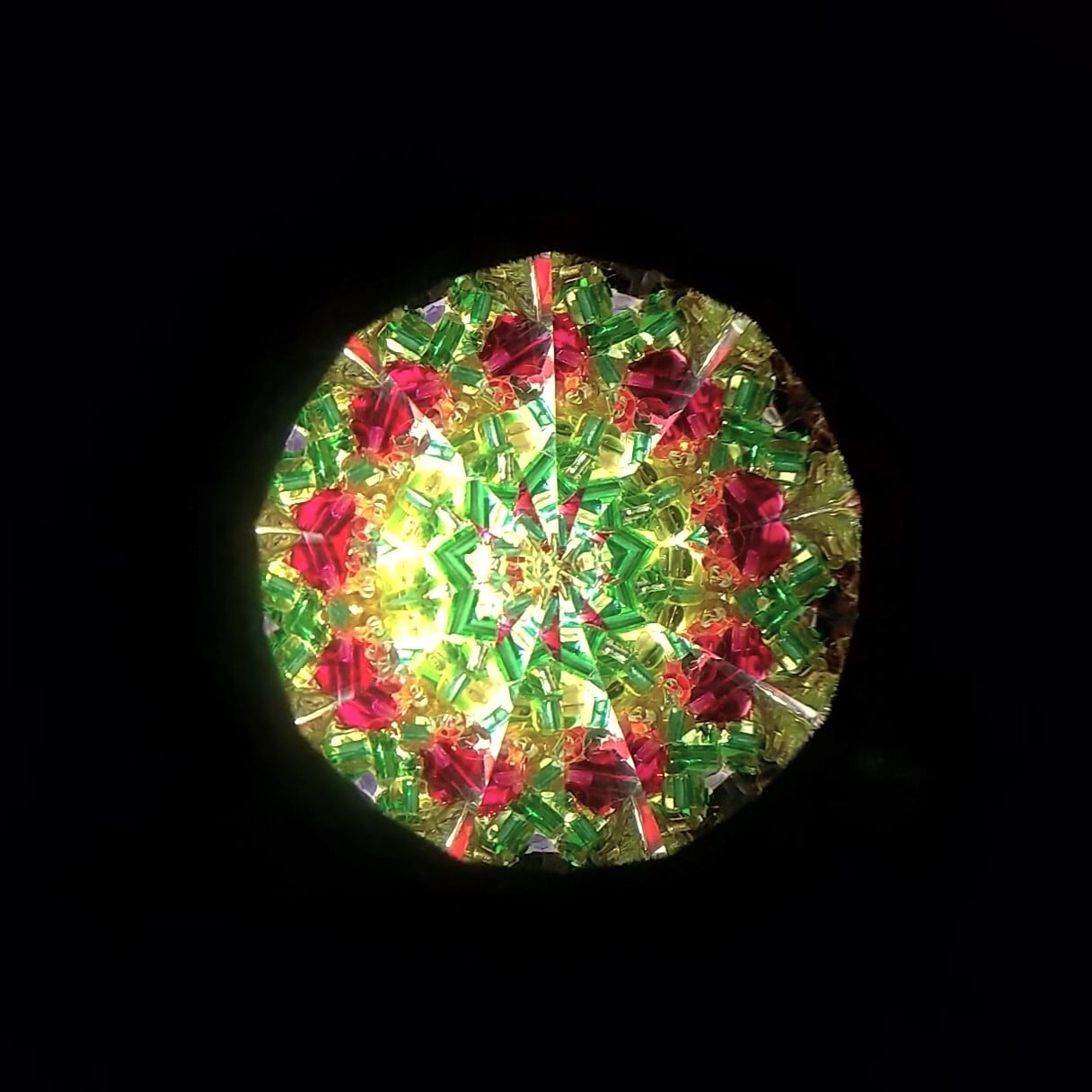 先端のオイルワンドには赤と緑のビーズを中心に詰めました。ゴールドもふんだんに入っていて、とても華やかな映像になっています。