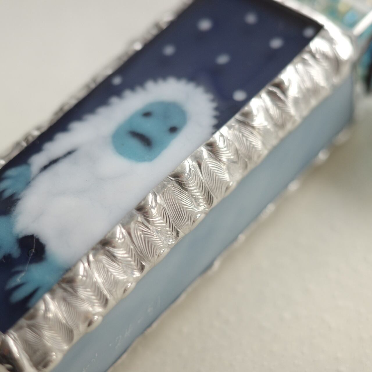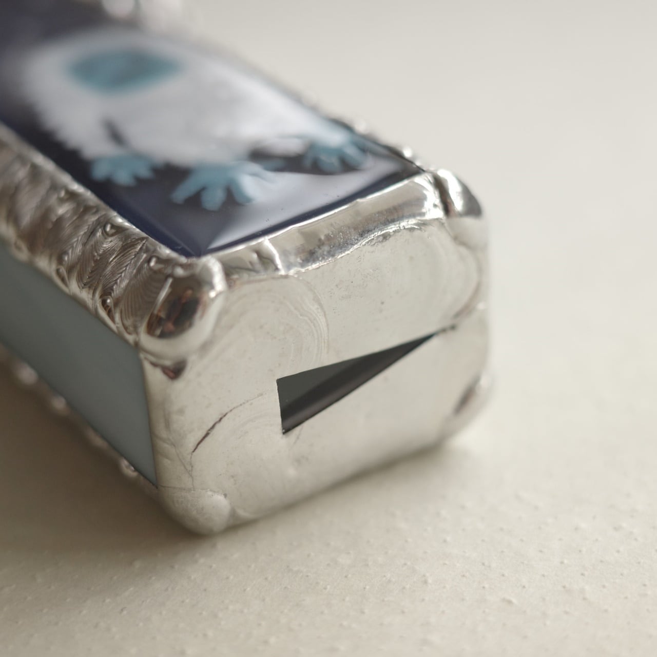 側面と裏面のガラスは、うっすらマーブル模様の入ったブルーグレーです。