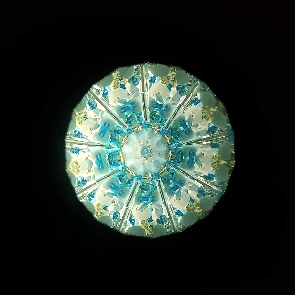 オイルワンドの中にはグリセリンオイルとともに青、パウダーブルー、乳白色、ゴールドのビーズが詰められています。ひやっと冷たい、氷の世界をイメージした映像になっています。